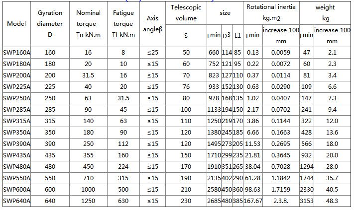 SWP type universal coupling, cross shaft bearing seat is split type, considering that the bearing is a wearing part in the universal joint, the bearing gland is made into a split, in order to facilitate the replacement of the bearing. However, the gland bolts are easy to loosen. According to the structure of the intermediate shaft and the connection form of the shaft fork, there are 7 types: SWP A type (with telescopic long type) cross shaft universal joint, B type - telescopic short universal joint, C type - no telescopic short universal joint, D type - no telescopic long universal joint, E type - with telescopic double flange long universal joint, F type - large Telescopic long universal coupling, G type - with telescopic ultra-short universal coupling.