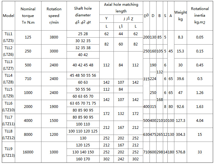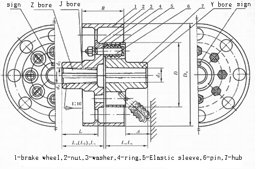 LTZ type with brake wheel elastic sleeve pin coupling is referred to as the pin coupling. The working temperature is -20~70°C; the transmission torque is 6.3~16000N.m; the shaft hole type is Y-shaped hole, J-shaped hole, J1 type hole, Z type hole; the pin bolt hole slope is 1:10; It has general shock absorption and certain two-axis offset compensation ability, convenient for disassembly and assembly, and can adapt to frequent and reverse multi-variable starting occasions. A wide range of common flexible couplings.