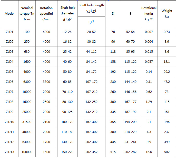 The elastic pin of the LZD type elastic pin gear coupling is turned by a nylon rod and placed in the matching hole between the two coupling halves and the outer sleeve, and transmitted through the elastic pin between the coupling and the outer sleeve. Moment, with a certain axis offset compensation and shock absorption performance. The pin can be removed and installed, and the baffle can be changed. The material is self-lubricating material and nylon is not required to be lubricated. Therefore, the LZD type elastic pin gear type coupling is easy to maintain, and has the advantages of small volume, light weight, simple structure, convenient replacement and low production cost compared with the toothed coupling. The LZD type elastic pin gear type coupling transmits a nominal torque of 100~100000N.m; the allowable speed is 4000~1500r/min; it belongs to the low speed high torque coupling. The LZD type elastic pin gear coupling is made according to the standard of GB/T5015-2003; the working temperature is -20~70°C; the axial compensation amount is ±1.5~3mm; the radial allowable compensation is 0.3~1.5mm; the angular tolerance is 0.5°. In addition, the biggest difference between the ZL (now LZ) type elastic pin gear coupling and the LZD type elastic pin gear coupling is that the LZD type pin gear coupling allows the shaft hole of one end of the coupling to be tapered. hole ![]() ![]() |