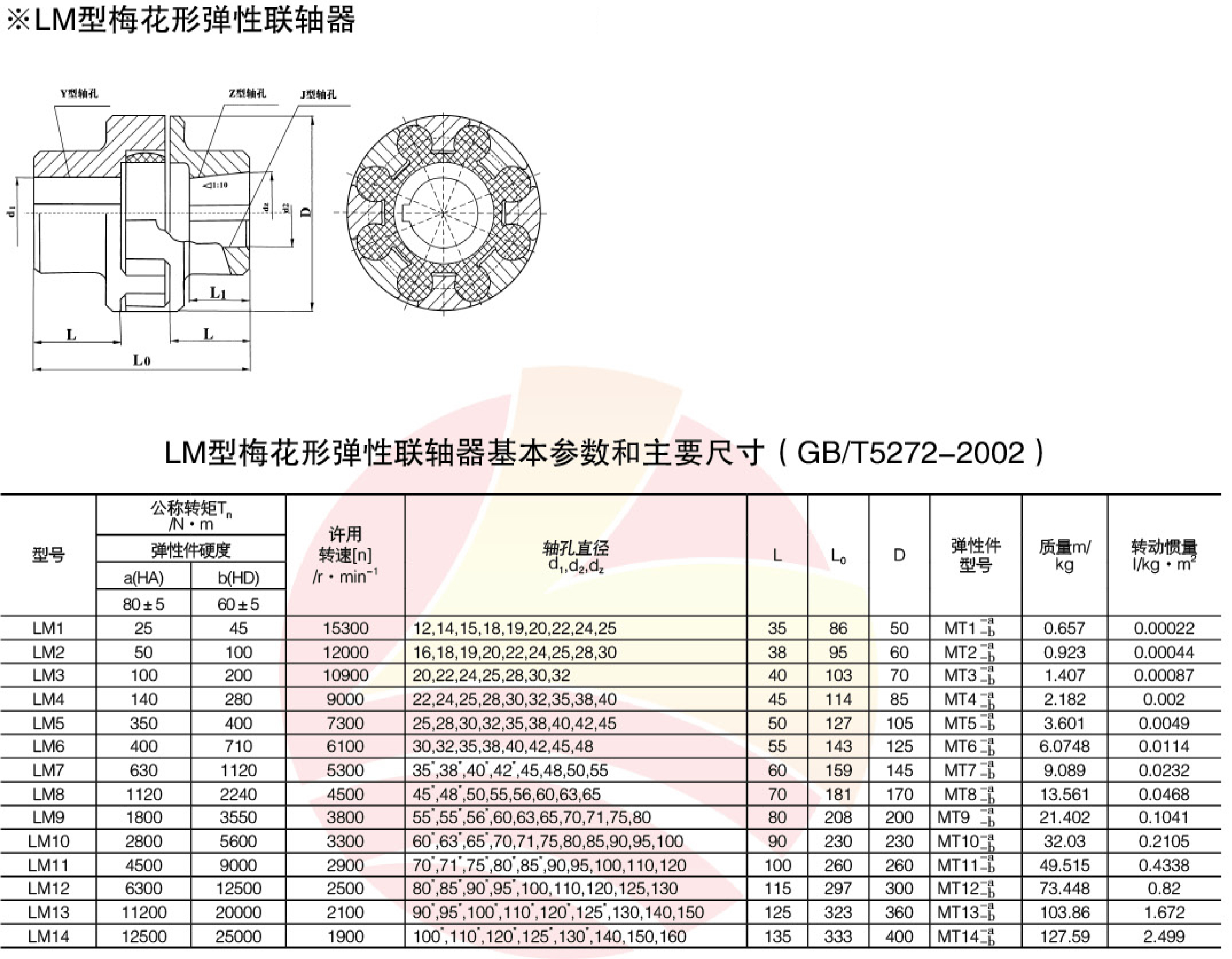 ML(LM)型梅花形彈性聯(lián)軸器 特點(diǎn)及應(yīng)用場合:具有補(bǔ)償兩軸相對偏移、減振、緩沖性能、徑向尺寸小,結(jié)構(gòu)簡單、不用潤滑、承載能力較高,維護(hù)方使、更換彈性元件需軸向移動 (MLS型除外),適用于聯(lián)接同軸線,起動頻繁,正反轉(zhuǎn)變化,中速、中等轉(zhuǎn)矩傳動軸系和要求工作可靠性高的工作部位。不適用于重載、低速及軸向尺寸受艱制,更換彈性元件后兩軸對中困難的部位。