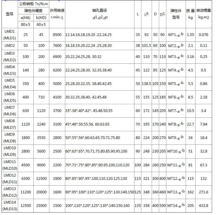MLD(LMD)型單法蘭型梅花彈性聯(lián)軸器基本參數(shù)和主要尺寸(GB/T5272-85) mm
