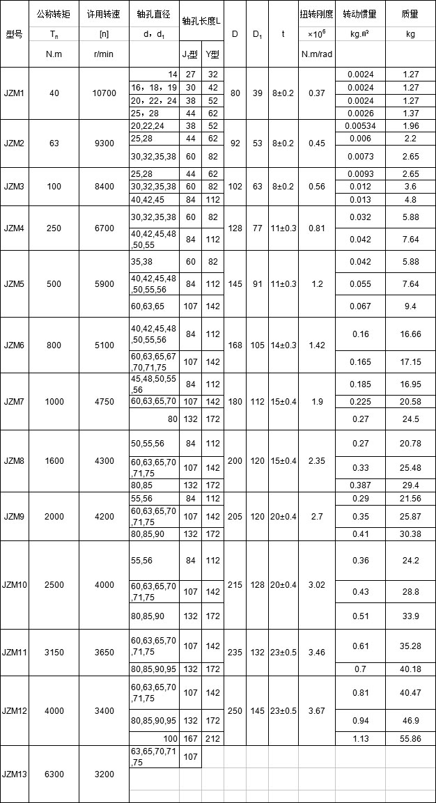 JZM型重型機(jī)械用膜片聯(lián)軸器的參數(shù)及主要尺寸: (JB/ZQ 4717-98) mm