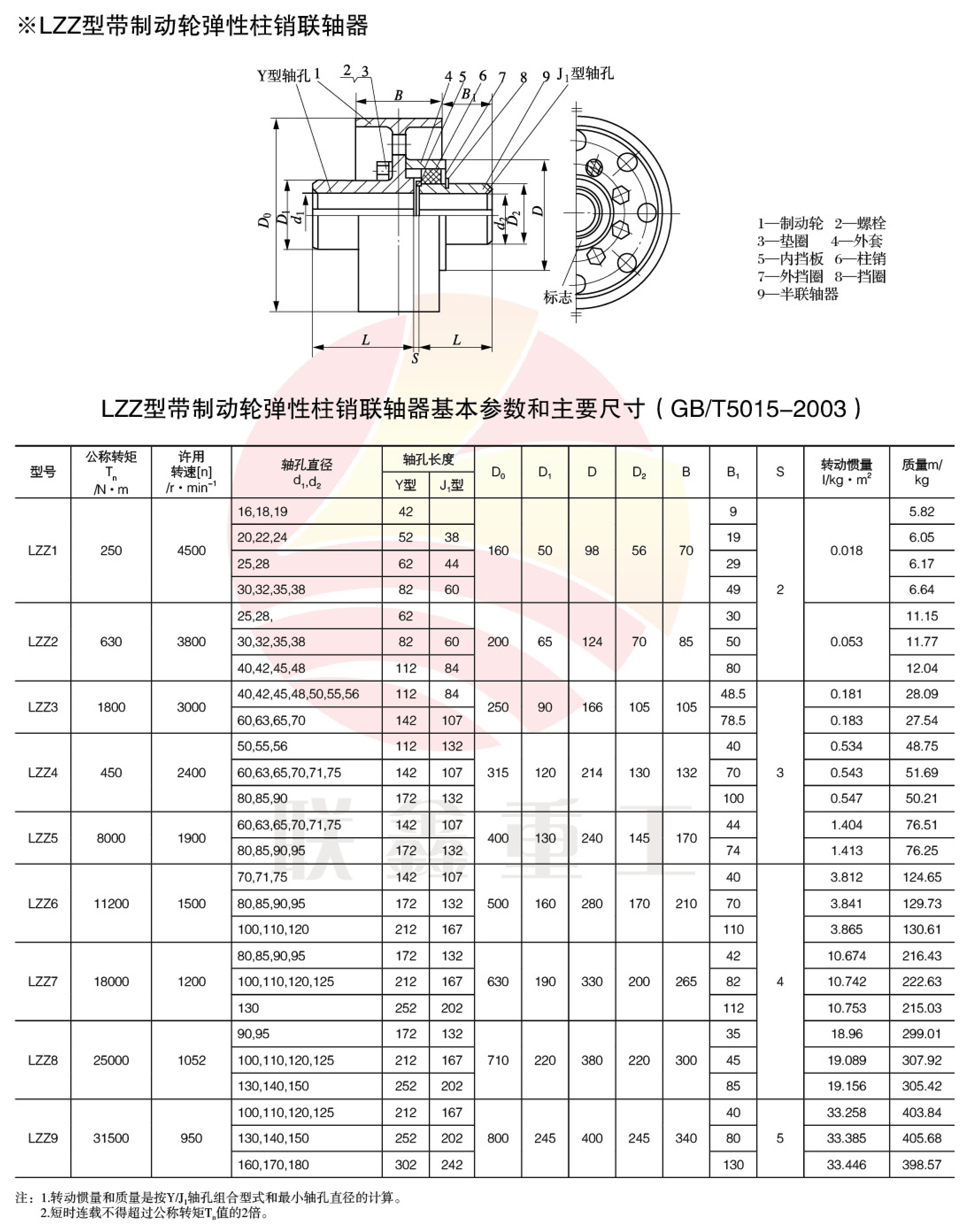 ZLL型帶制動(dòng)輪彈性柱銷齒式聯(lián)軸器簡(jiǎn)稱”彈性柱銷齒式聯(lián)軸器“通過(guò)彈性柱銷傳遞轉(zhuǎn)矩實(shí)現(xiàn)兩半個(gè)聯(lián)軸器聯(lián)接,具有軸偏移補(bǔ)償能力和減震性能,可代替部分齒式聯(lián)軸器。ZLL型帶制動(dòng)輪彈性柱銷齒式聯(lián)軸器與齒式聯(lián)軸器相比,結(jié)構(gòu)簡(jiǎn)單且組成零件較少,制造較方便,不用齒輪加工機(jī)床。ZLL型帶制動(dòng)輪彈性柱銷齒式聯(lián)軸器屬于柱銷聯(lián)軸器的一種,按(GB/T5015-2003)標(biāo)準(zhǔn)制作;工作溫度為-20 ~70℃;軸向許用補(bǔ)償量為:±1.5~3mm;徑向許用補(bǔ)償量為0.3~1.5mm;角向許用補(bǔ)償量為0.5°。 ZLL型帶制動(dòng)輪彈性柱銷齒式聯(lián)軸器的彈性柱銷利用尼龍棒車削而成,所以也稱為尼龍柱銷齒式聯(lián)軸器,尼龍柱銷為自潤(rùn)材料不需潤(rùn)滑,拆下檔板即可更換。尼龍柱銷置于兩個(gè)半聯(lián)軸器與外環(huán)之間的對(duì)合孔中,聯(lián)軸器通過(guò)柱銷傳遞轉(zhuǎn)矩,ZLL型帶制動(dòng)輪彈性柱銷齒式聯(lián)軸器傳遞公稱扭矩為250~31500N.m;許用轉(zhuǎn)速為4000~950r/min;屬于高扭矩低轉(zhuǎn)速型聯(lián)軸器。