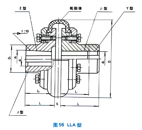 The tire coupling for LLA metallurgical equipment is a highly flexible coupling with good shock absorption cushioning and excellent inter-axis offset compensation.