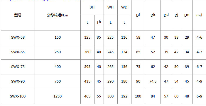 小規(guī)格萬(wàn)向聯(lián)軸器 特點(diǎn)及應(yīng)用場(chǎng)合:聯(lián)接兩個(gè)不同軸線的軸系傳動(dòng),不能緩沖、減振,采用整體叉頭結(jié)構(gòu),軸承固定不用螺栓,避免了螺栓松動(dòng)斷裂,便于維修,延長(zhǎng)使用壽命,可靠性高,承載能力大、傾角大,可在β≤5°~25°工況下工作。 小規(guī)格萬(wàn)向聯(lián)軸器基本參數(shù)和主要尺寸mm ![]() |